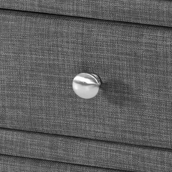 - Elegant mirror-topped fabric drawers