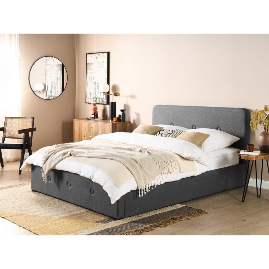 A perfect balance of simplicity and modern elegance, this dark gray upholstered double bed brings refined style and everyday comfort to your bedroom. Designed with a clean silhouette, it features soft, padded upholstery in a rich gray tone that adds depth and sophistication to any contemporary space. The button-tufted headboard and cushioned frame provide inviting comfort, ideal for relaxing or reading in bed, while the angled wooden legs introduce a subtle modern touch. Crafted for durability and long-lasting use, this bed is both stylish and practical.