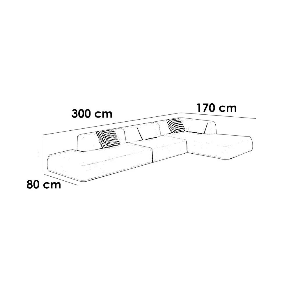 300cm W x 170cm L x 80cm D