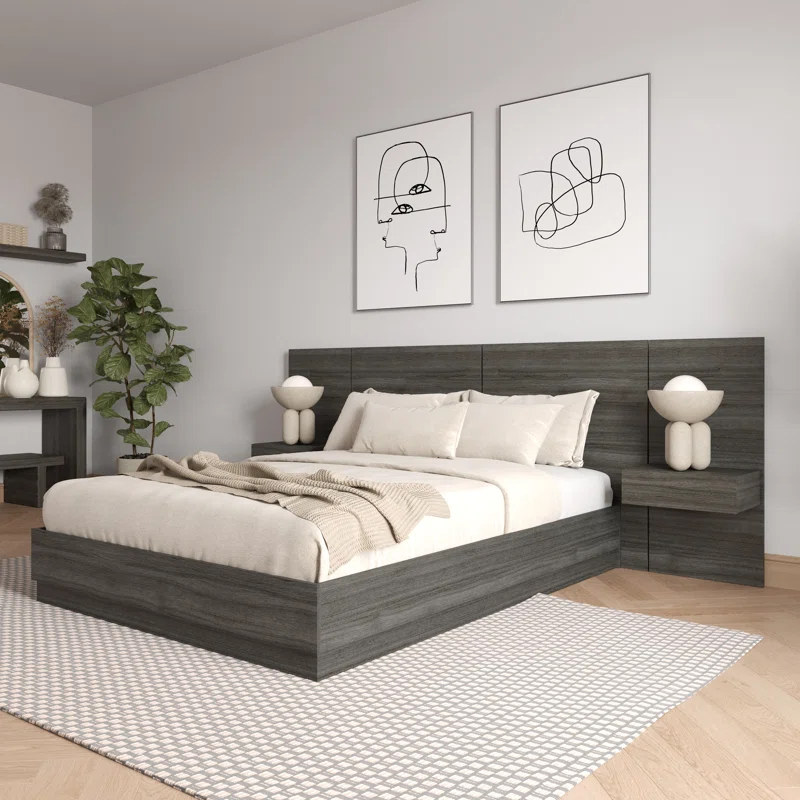 - Functional headboard with floating nightstands enhances space efficiency and adds style.