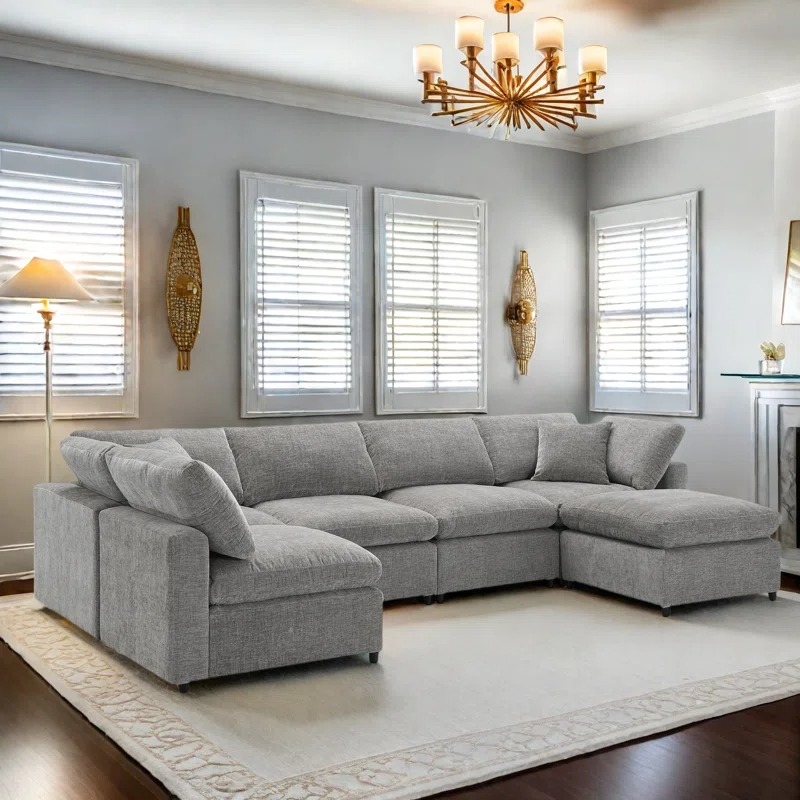 The PoshHouse Furniture modern modular cloud sofa bed with ottoman offers a sleek, customizable design that can be freely rearranged to fit any living space. Perfect for those who love versatility and style, this modular sofa adapts to your needs, providing both comfort and function.