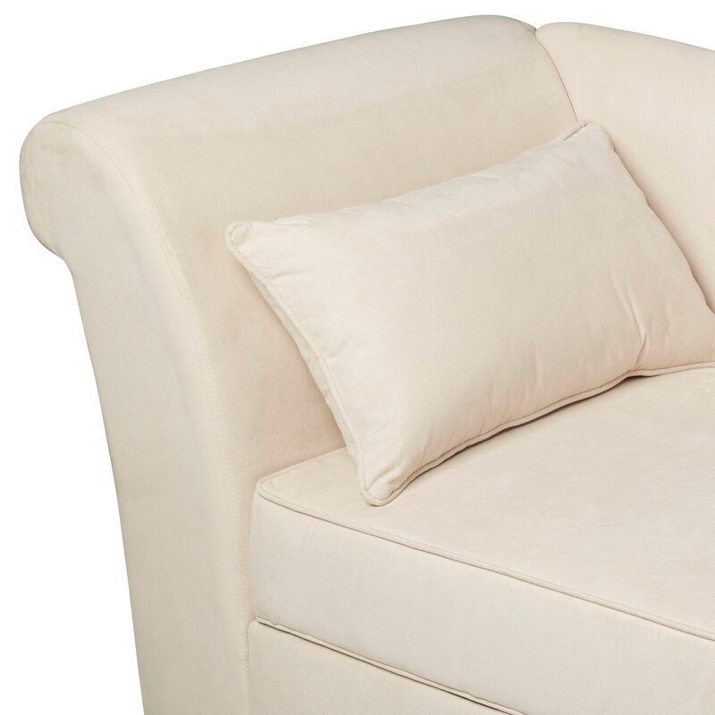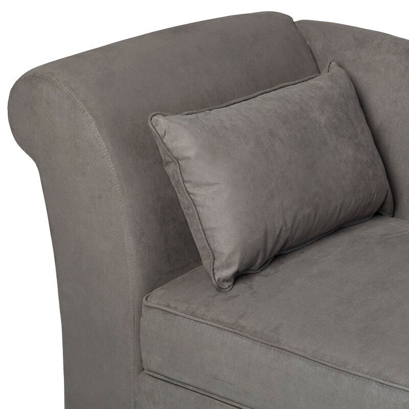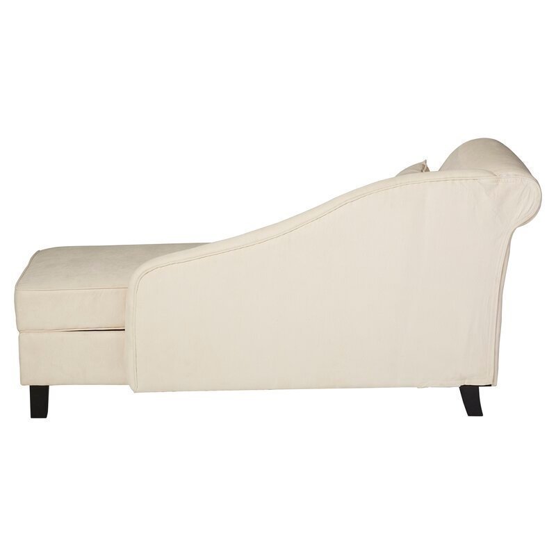 This modern chaise lounge offers a refreshing take on classic design. With its sleek lines, gently sloping arm, and rolled back, it invites relaxation and conversation. Built on a sturdy wood frame with foam filling and supportive coil springs, this piece ensures both comfort and durability. The four black-finished feet add a stylish touch, and the included toss pillow enhances its cozy feel.