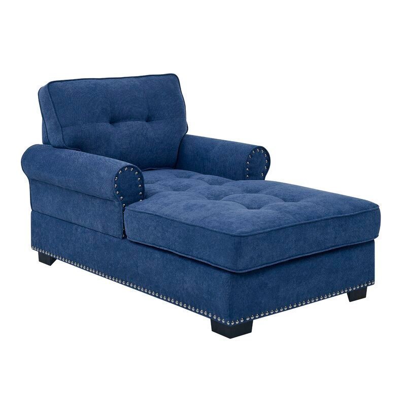 A chaise lounger is the perfect spot to unwind, whether you’re lost in a good book or catching up on the evening news. This stylishly upholstered piece adds a touch of elegance and comfort to your bedroom or living room. The eye-catching nailhead trim contrasts beautifully with the soft fabric, while the rolled arm design highlights its graceful shape.