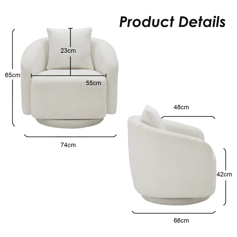 Add a touch of modern luxury to any room with this stylish swivel barrel chair. Featuring a smooth 360° swivel base and upholstered in soft, stain-resistant bouclé, it’s both pet-friendly and easy to maintain. Perfect for your living room, bedroom, or office—comfort and elegance in one chic package.