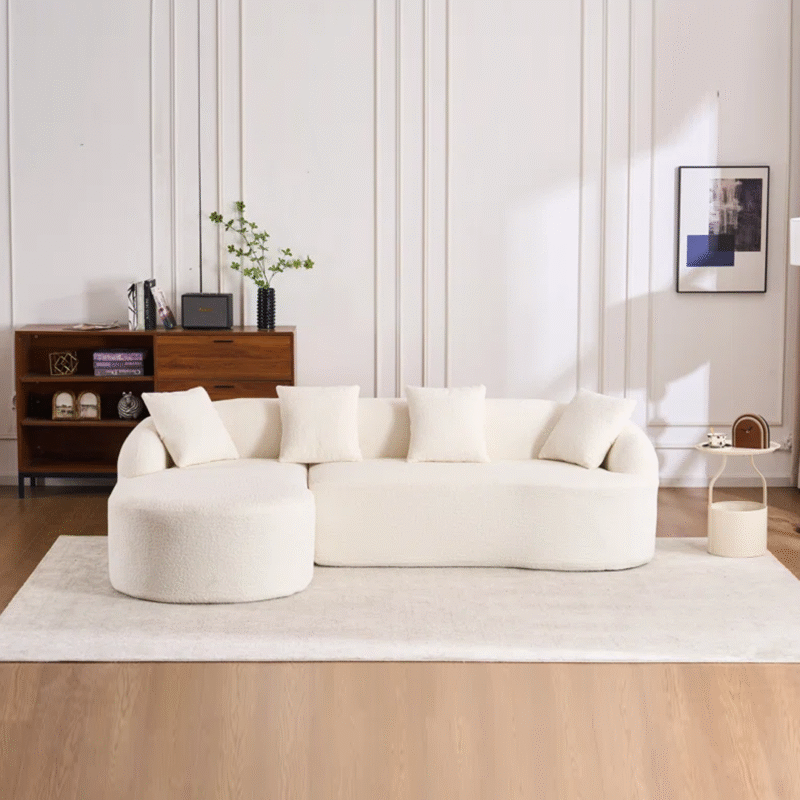 Wrap your space in soft curves and cozy character with this sculptural bouclé sectional by PH Furniture. Designed to feel inviting from every angle, its gentle bubble-like form and creamy textured upholstery create a relaxed atmosphere that instantly makes you want to sit, sink in, and stay a while. It’s a sofa that doesn’t just fill a room—it shapes it.