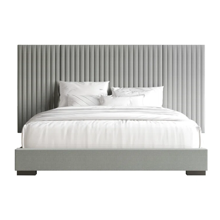 Upgrade your bedroom with this elegant Wall Panel Bed, crafted from durable solid rubberwood, MDF, and LVL. Featuring clean vertical line stitching, this bed adds a touch of simple luxury to any space. Upholstered in 100% polyester linen for lasting comfort and style. A box spring is required (sold separately), with a recommended mattress thickness of 8-12 inches. this bed brings both sophistication and functionality to your home.